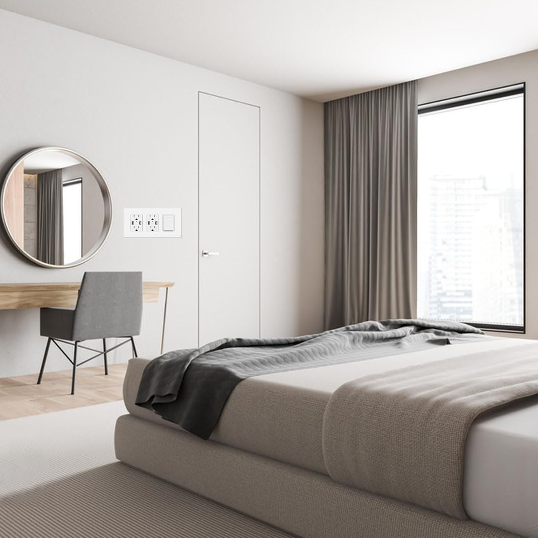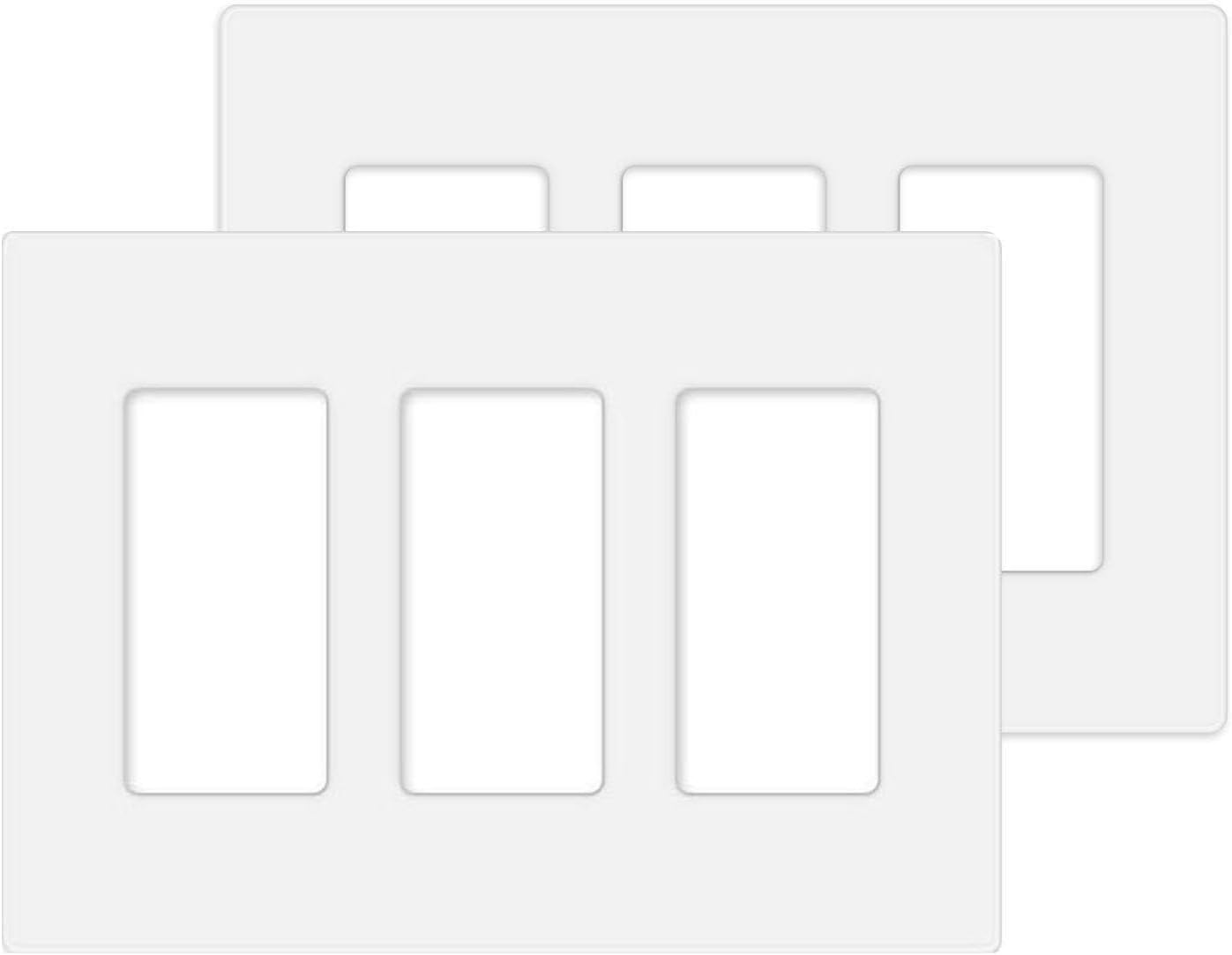 - 【Compatible Widely】Screwless triple wall plates work with all kinds of decorator-style switches and outlets including dimmer, light switch, smart switch, rocker switches, sensors, timer switches, GFCI outlets, electric outlets and and single/double/compo switches, etc.