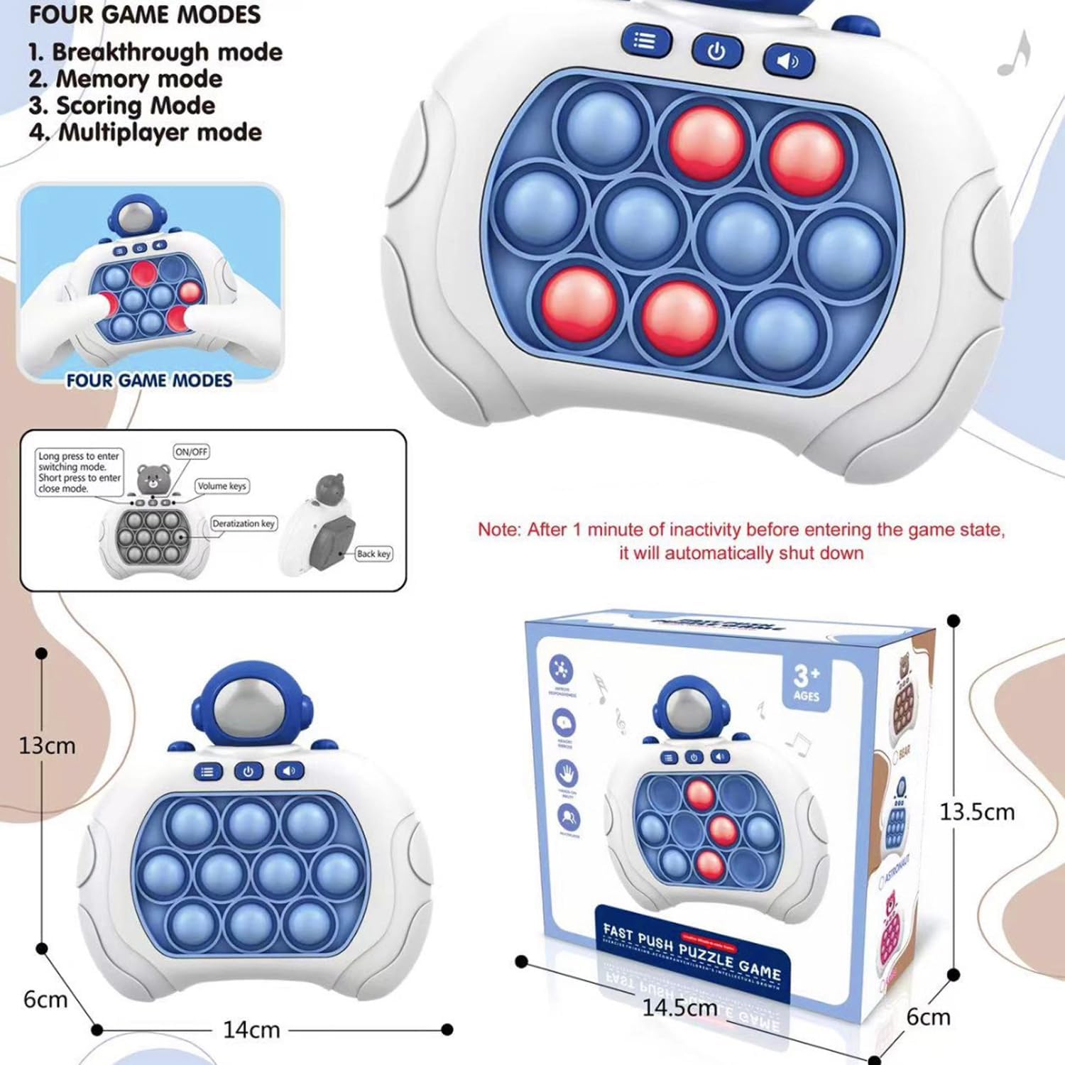 - 1. Fast Electronic Bubble Game Console: Combine the classic bubble popping game with fast-paced electronic fun! Our electronic pop gameis perfect for exercising children's reaction and hand-eye coordination while providing endless entertainment for one-on-one challenges or cooperative pla