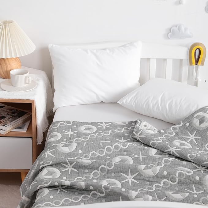 NTBAY 3 Layer Toddler Blanket, Muslin Cotton Jacquard Bed Blankets, Lightweight Thermal Baby Blanket, Super Soft and Warm Crib Blanket for All Seasons, Decoration Gift, 30"x40", Grey Starfish