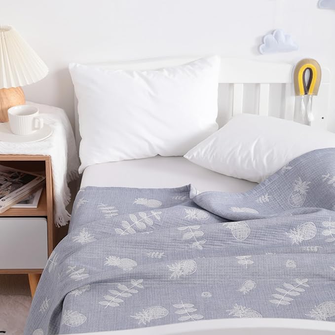 NTBAY 3 Layer Toddler Blanket, Muslin Cotton Jacquard Bed Blankets, Lightweight Thermal Baby Blanket, Super Soft and Warm Crib Blanket for All Seasons, Decoration Gift, 30"x40", Blue Pineapple