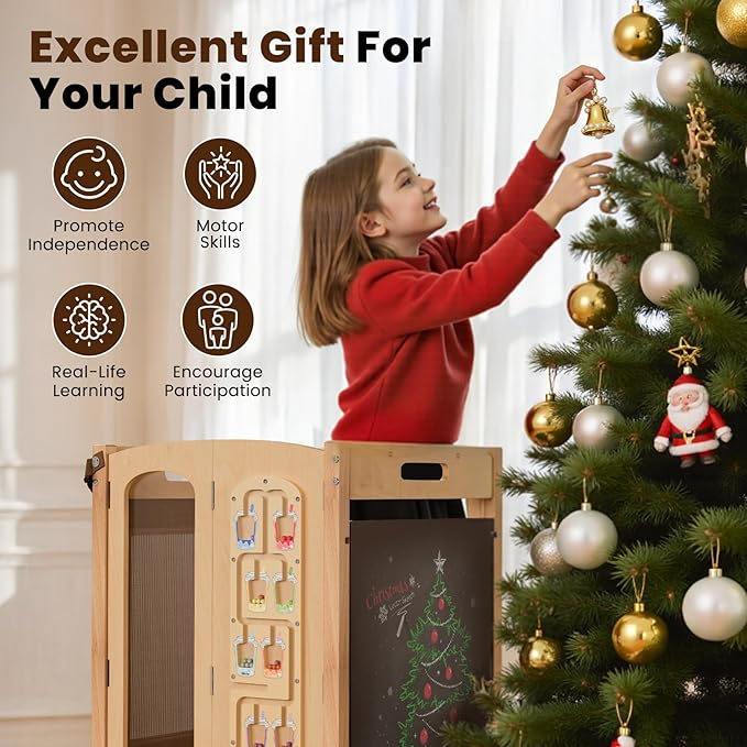 - 【Promotes Motor Skills Development】The child tower features 5 Montessori activities, including a clock, gears, magnetic maze, chalkboard, and whiteboard. These activities are designed to stimulate your child's motor skills development while providing endless fun and learning opportunities.