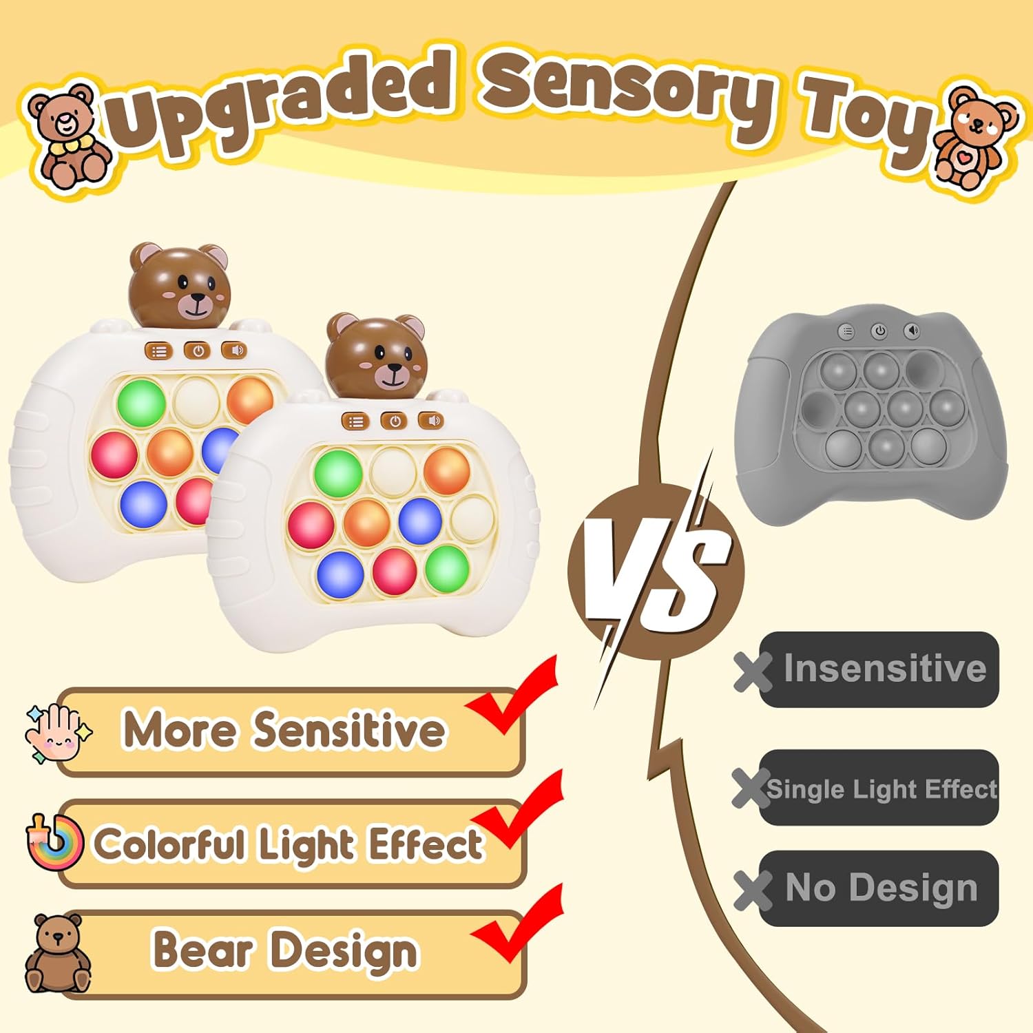 - Colorful Light Handheld Game: Upgrade your child's gaming experience with the latest fast push bubble game, which is built in 5 color lights for a more exciting visual experience, designed to improve concentration, memory, reaction time, and hand-eye coordination. Its straightforward gameplay is a perfect toy for kids and even adults to play and have fun