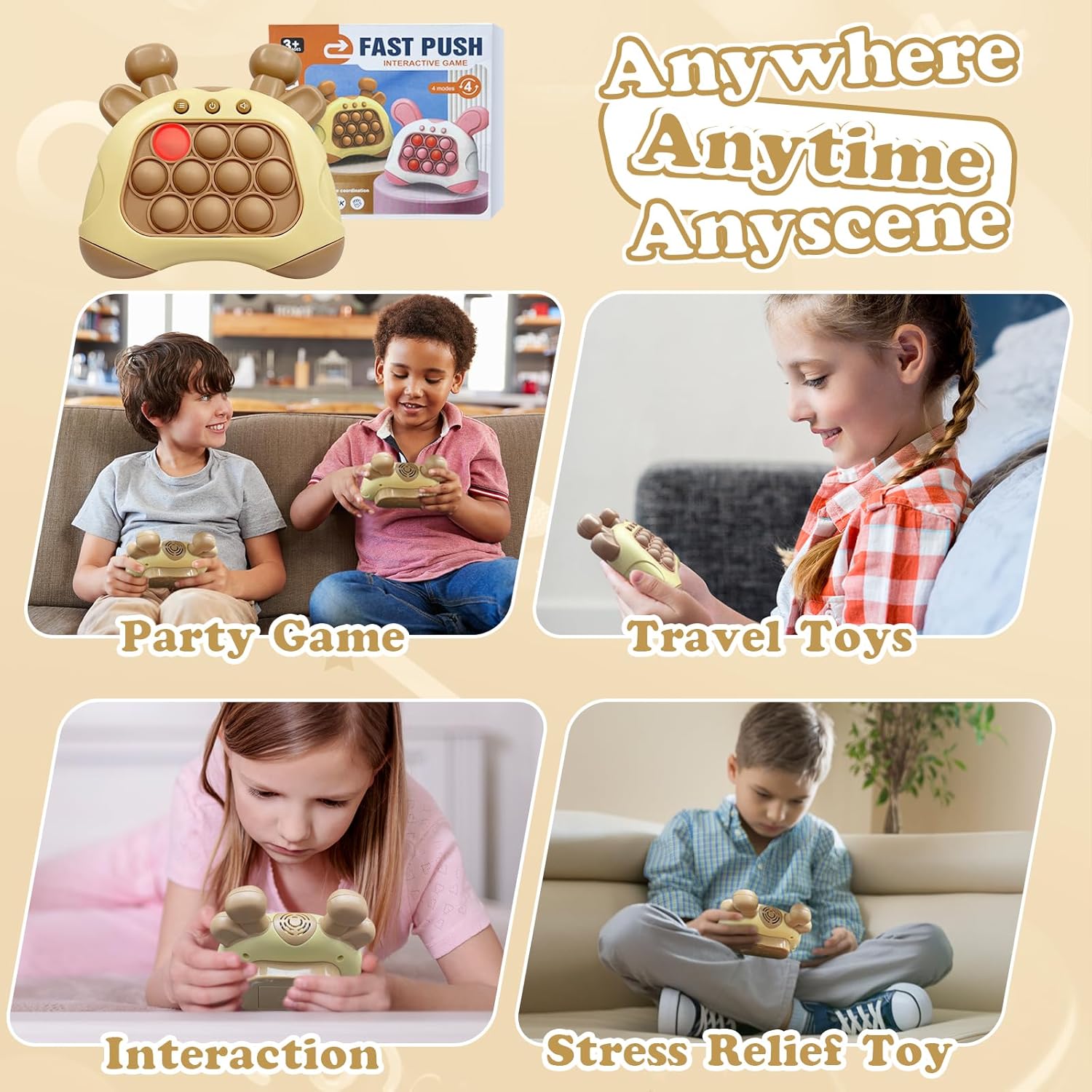 - 🗳️【Interactive Handheld Pop Console Game】-- Quick push game, perfect for releasing kids stresses and enhancing sensory stimulation. Meanwhile, it attracts kids and adults playing for hours away from their phones and computers, effectively reducing screen time, protect their eyes. The novel game mode can also help you concentrate, beat boredom and relieve study, work and office pressure, generate happiness. The design makes it a great STEM toy for improving focus and engagement.