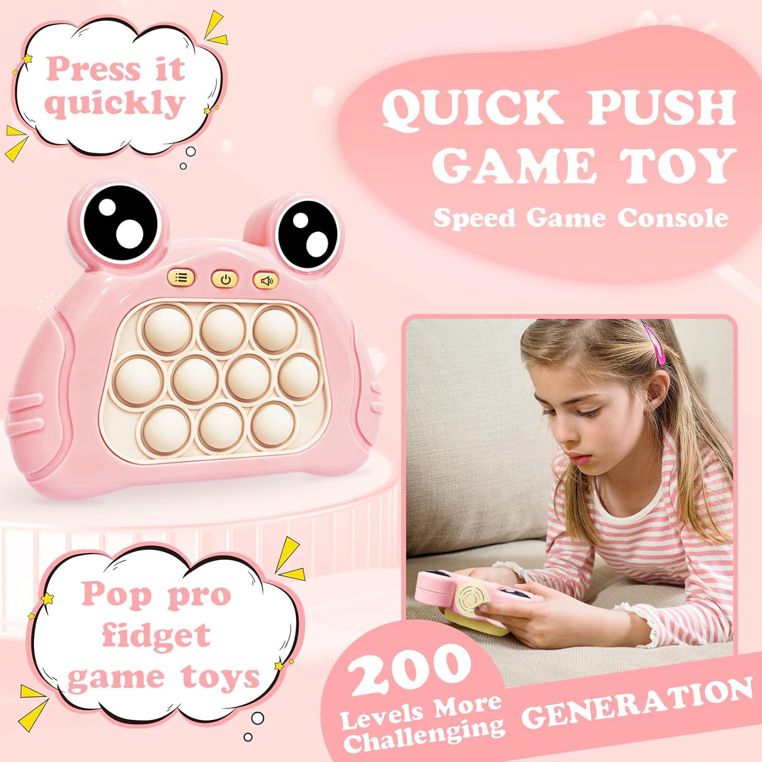 - 🎮【Perfect Electronic Pop Game Gift for Kids】-- Handheld play toys, perfect tools for interactive game playing with friends. Quick push pop fidget games, a great gift idea for kids, teens and even adults, suitable for birthdays, parties, school classroom rewards, holidays like Thanksgiving, Halloween, Christmas. Come and experience it! Your kids will be in love with this decompression game console. Any problems abut pop pro, please contact us, we will provide you with the appropriate solution.