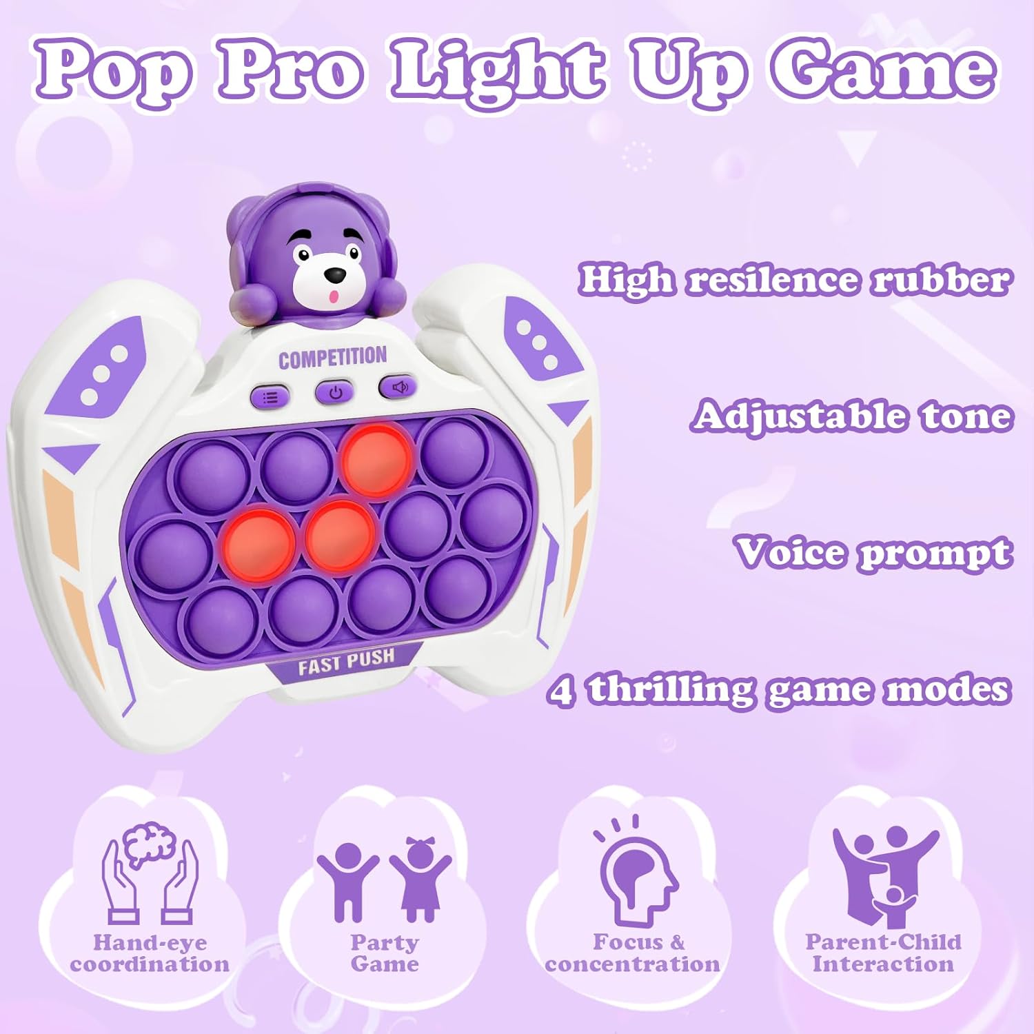 Fast Push Pop Pro Light Up Fidget Bubble Game Controller, Puzzle Pop Pro Game Fidget Toys Adults Handheld Bubble Pop Fidget Game Console Anti-Anxiety Autism Electronic Pop Game