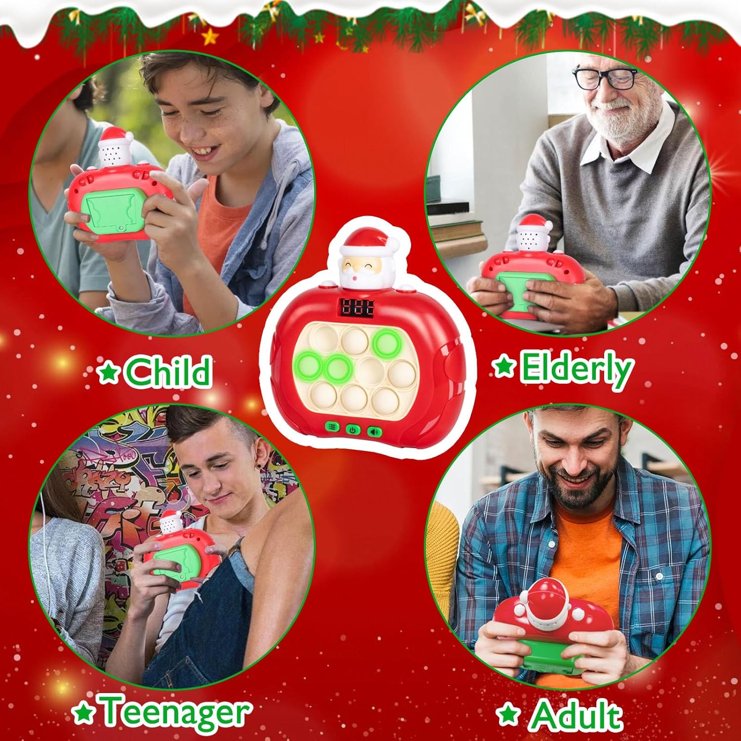 - Pocket Handheld Game: This quick bubble push game animal/Santa Claus version machine is cute and diverse gameplay, small and exquisite convenient to carry in your pocket. Ideal for you to enjoy handheld games indoors, outdoors or even while traveling. Requires installation of 3 batteries. Please note:Batteries are not included