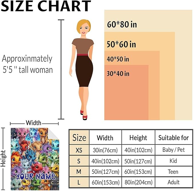 - 【Various Sizes Blanket】This dragon flannel throw blanket is available in four sizes to fit your every need. Lap size (30” x 40”) is suitable for sofas and offices; crib size (40” x 50”) is great for sofas; throw size (50” x 60”) is great for beds and sofas; and twin size (60” x 80”) suitable for beds, sofas and living rooms.