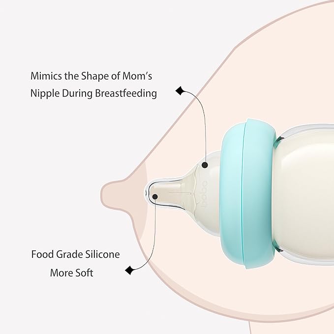 - The bottom of the nipple has intelligent pressure regulating valve, balance internal and external pressure, milk and air separation, to avoid the baby breathing too much air caused by colic flatulence.