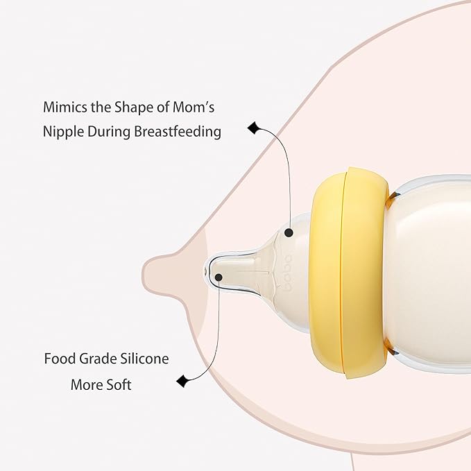 - YOHKOH Natural Baby Bottles are made of high quality borosilicate glass, pure and clear without impurities. Paired with a liquid silicone nipple, it can help empty the bottle of air, and the baby can comfortably complete the feeding.