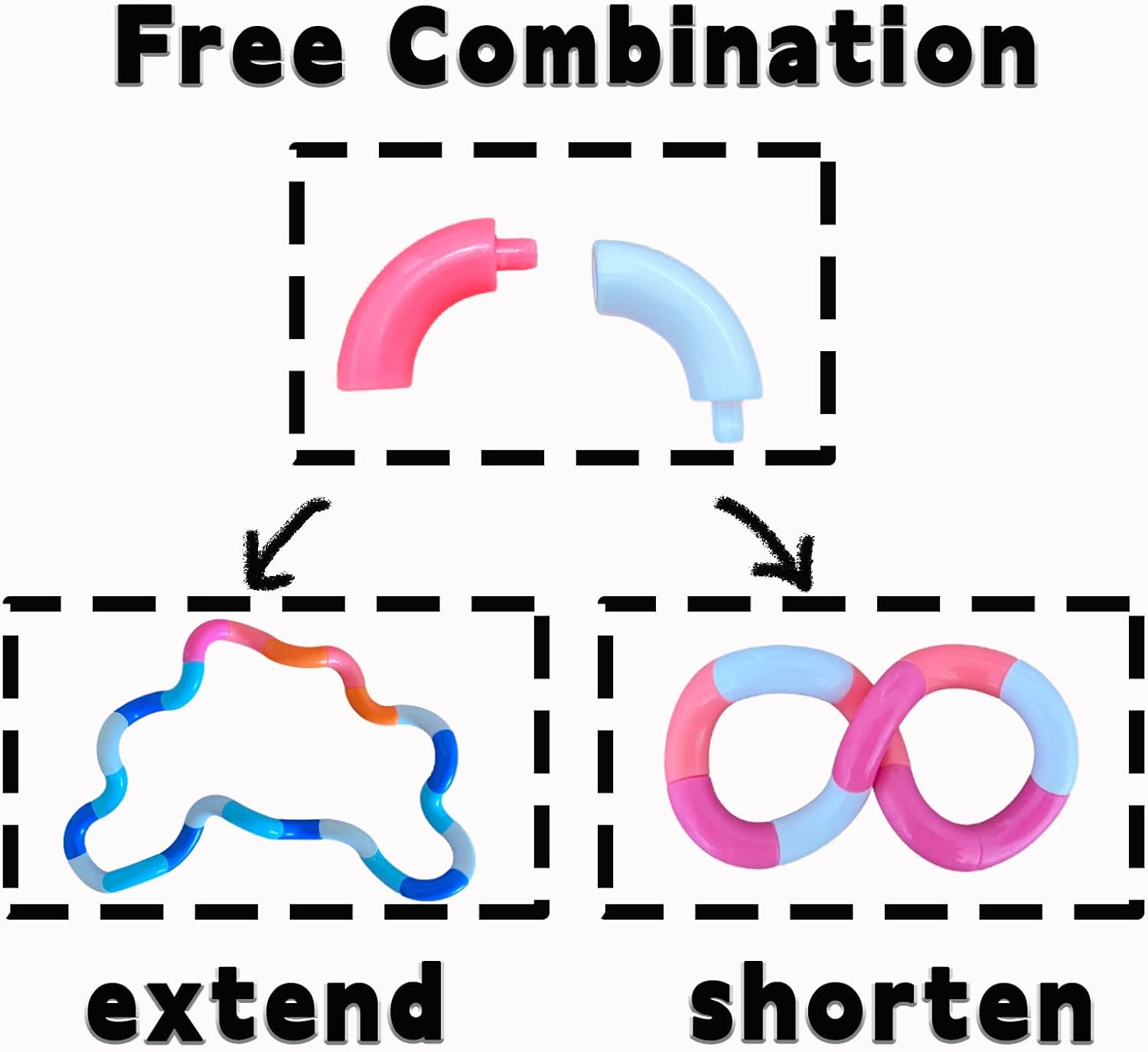 - 【 Easy To Twists】: These fidget toys for kids are ideal sensory items for relaxation, stress, relief, and decompression. Freely twist the sensory silent fidget toy, turn every direction that allows for every possibility of movement,if you accidentally pop two of the segments apart, it’s easy to snap fidget toys back together.