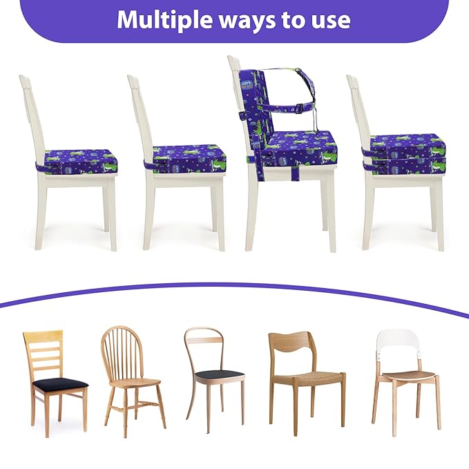 - 5-POINT-BUKLE & 2PCS: The toddler booster seat adopts 5-point-buckle. Compared with other old models on the market, our booster seat has added backrests and 5-point harness.This is a great way to give your little one a boost at a 'grown up' table! You can use thicker cushions as a booster and the thinner as a back rest, and there's also a 5-point harness to keep your little one in place