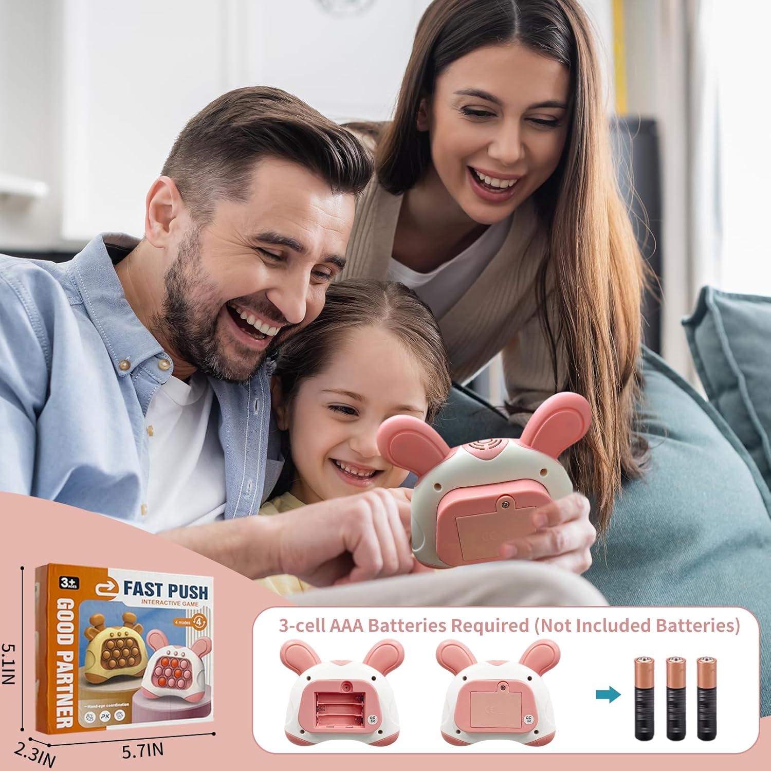Pop Quick Push Game Console Fidget Toys Light Up Handheld Puzzle Press Popping Toy for Kids Adult Pink Rabbit