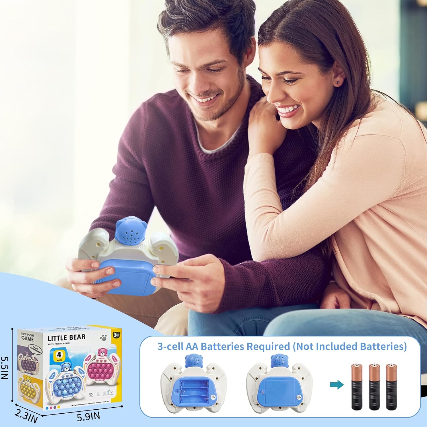 Pop Quick Push Game Console Fidget Toys Light Up Handheld Puzzle Press Popping Toy for Kids Adult Blue Bear
