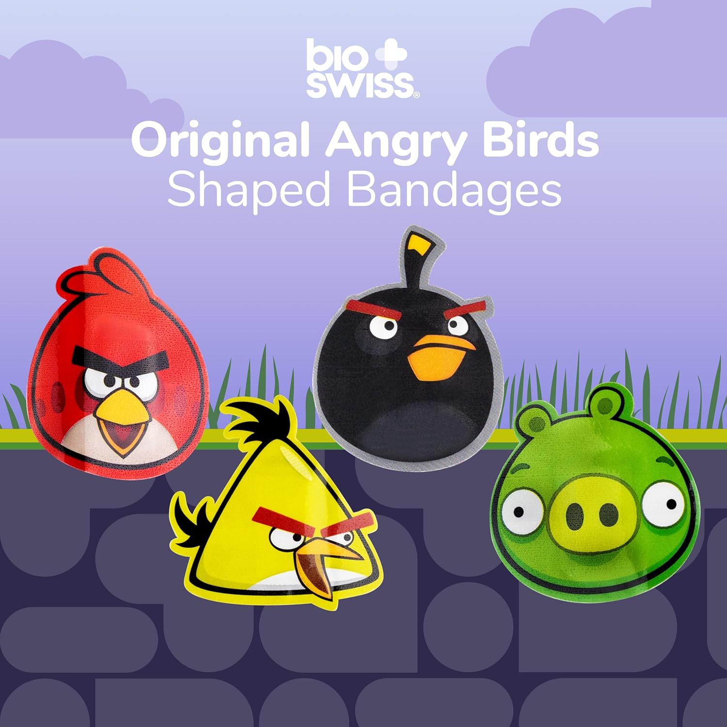 BioSwiss Bandages, Angry Birds Game Shaped Self Adhesive Bandage, Latex Free Sterile Wound Care, Standard Shape for Kids and Adults, 50 Count