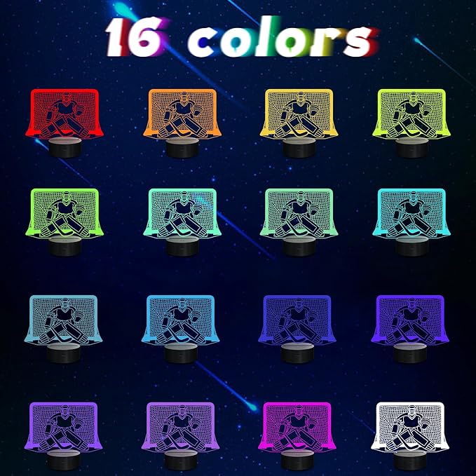 Ice Hockey Night Light, 3D LED Optical Illusion Lamp with Remote Control and Timer, Perfect Christmas and Birthday Gift Idea for Boys, Kids, and Teen