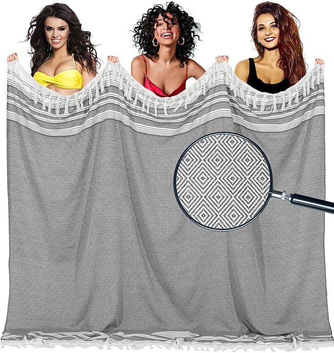 - OVERSIZED and COMPACT : Upgrade your beach game with our Türkiye Cotton Blanket Beach Towel, a whopping 82 x 88 inch of pure comfort. Perfect for family beach days or cozy couple camping. Easy fold design means more room in your suitcase for fun. Grab yours now and make every adventure a plush affair