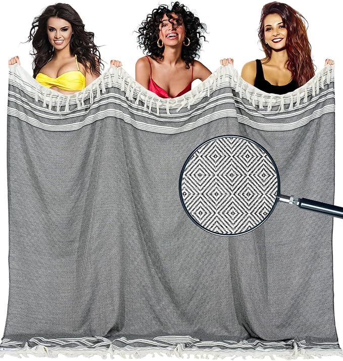 - OVERSIZED and COMPACT : Upgrade your beach game with our Türkiye Cotton Blanket Beach Towel, a whopping 82 x 88 inch of pure comfort. Perfect for family beach days or cozy couple camping. Easy fold design means more room in your suitcase for fun. Grab yours now and make every adventure a plush affair