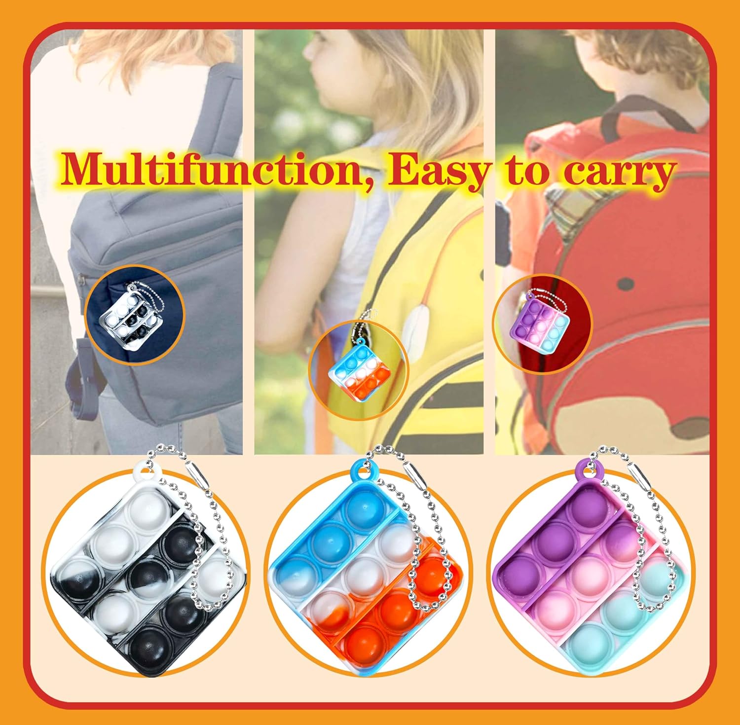 - These mini pop keychain fidget are portable. The fidget toy set is suitable for children as well as adults. These sensory fidget toys are very simple to use, you can have endless fun by flipping, pressing, kneading