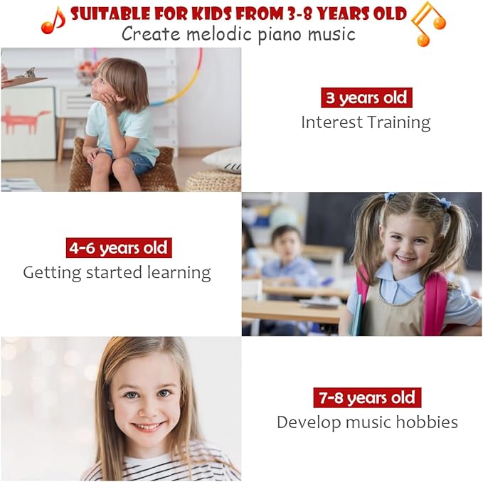 - 【Ideal Gift for Your Little One】This kids piano and stool set will be a perfect gift for kids of 3-8 years old. It will be effective in inspiring musical potential, promoting sound discrimination, improving hand-eye coordination and reducing screen time. Moreover, the piano has gained ASTM and CPSIA certification.