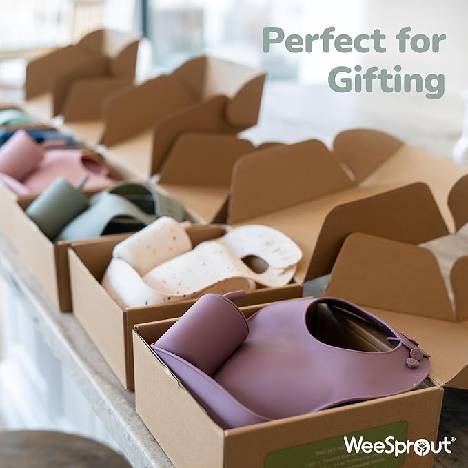 WeeSprout Baby Led Weaning Bundle, Silicone Suction Bowl, Spoons, Bib & Cup, Develops Self Feeding Skills, Dishwasher Safe (Mint)