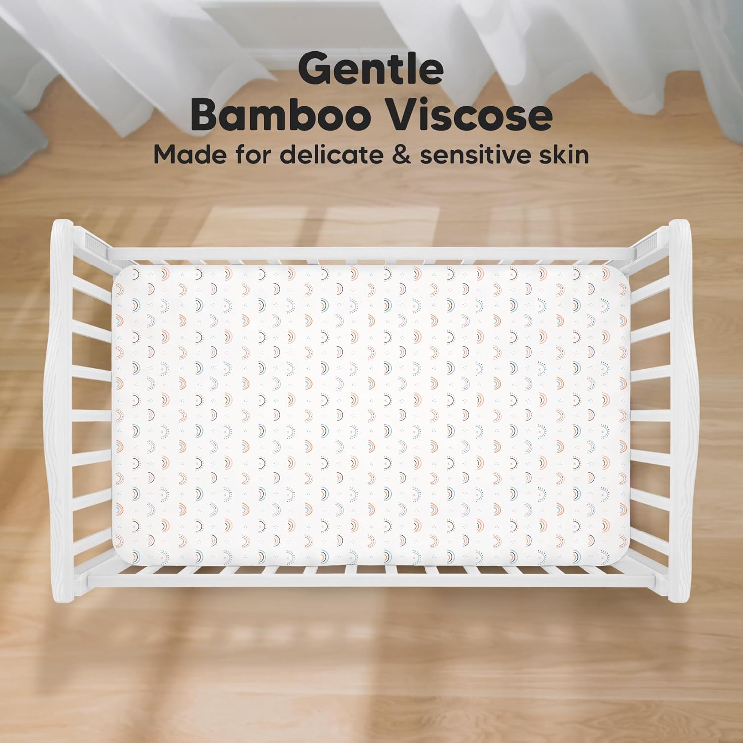 KeaBabies 2-Pack Baby Crib Sheets for Boys, Girls - 52x28 Viscose Derived from Bamboo Toddler Bed Sheets Neutral, Fitted Crib Mattress Cover for Standard Baby Bedding, Soft & Cozy (Jolly Rainbow)