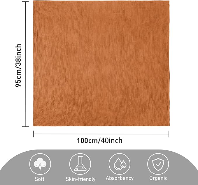 - THIN, BREATHABLE & ABSORBENT: Each individual muslin swaddle blanket (38X40 inches) is thin enough to provide ample breathability, which means they can keep your little one warm and cozy in cooler weather, let their skin breathe in warmer weather. It can helps regulate your baby's body temperature and prevents overheating.