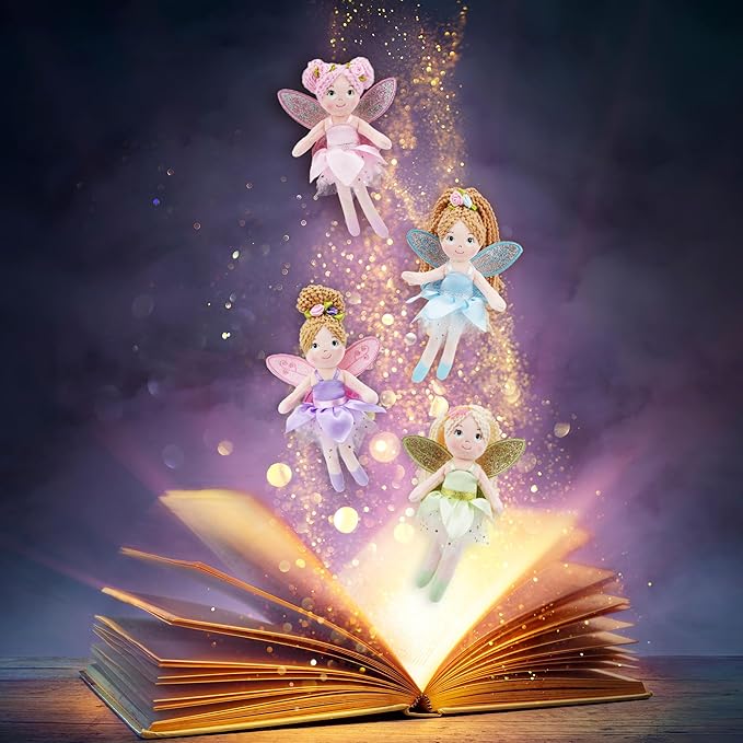 June Garden 7" Enchanted Garden 4 PCs Fairy Keychains Bundle - Plush Soft Keychain - Best Value