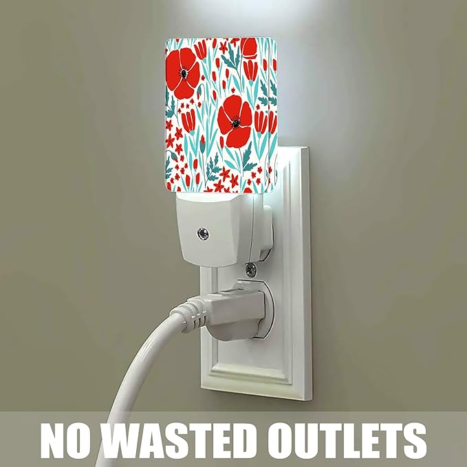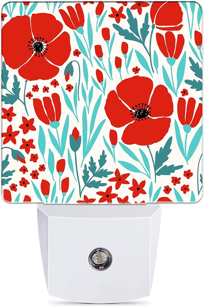 Red Morning Glory Night Light, Dusk to Dawn Smart Sensor Night Light for Bedroom Bathroom Kitchen Hallway Stairs Hallway, Plug-in, Energy Efficient Decor Desk Lamp Gifts
