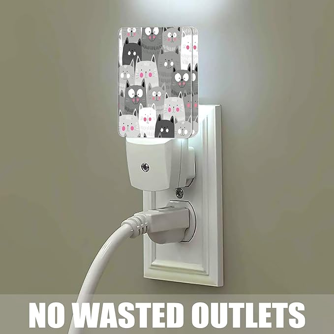 Gray Cartoon Cat Night Light Plug in Wall Lamp Smart Dusk to Dawn Sensor for Home Decorative, Kids Room Bedroom Bathroom Kitchen Hallway Gifts