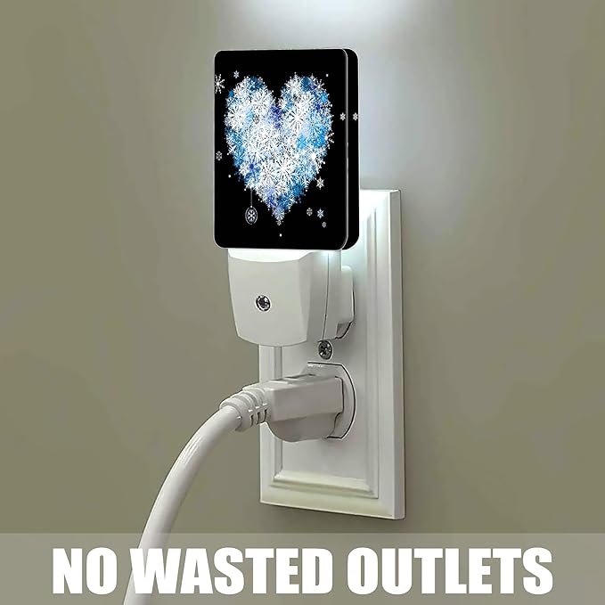 Winter Art Hearts Dusk to Dawn Night Light, Auto Sensor Lamp Home Indoor Stairway Kitchen Corridor, Night Lights Plug into Wall Decor, Boys Girls Women Men Room Gifts