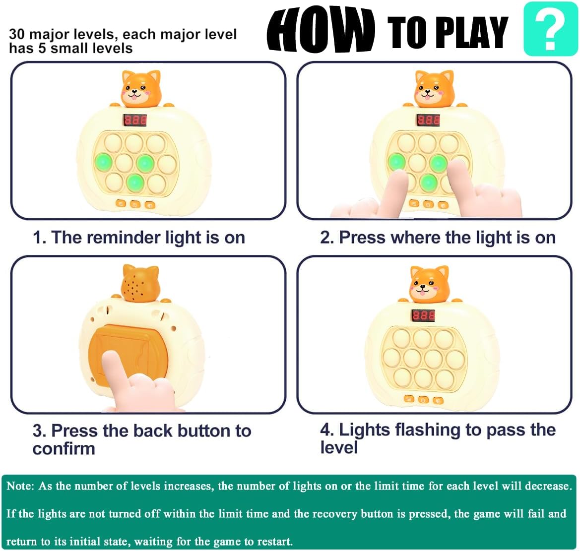 Quick Push Game Console,Puzzle Game Console Machine, Improving The Reaction Ability and Attention,Pop Game Sensory Fidget Toys (Yellow)