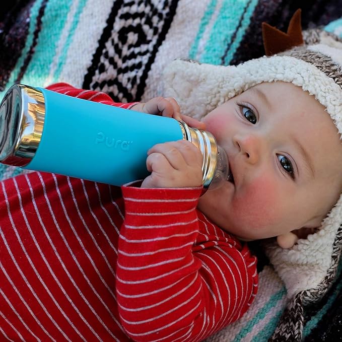 - INFANT FEEDING TO KIDS WATER BOTTLE: Baby Grows...Bottle Evolves: This non toxic stainless steel baby bottle transforms into a sippy bottle, straw bottle, or sport/water bottle by simply swapping the nipple out for another Pura silicone lid.