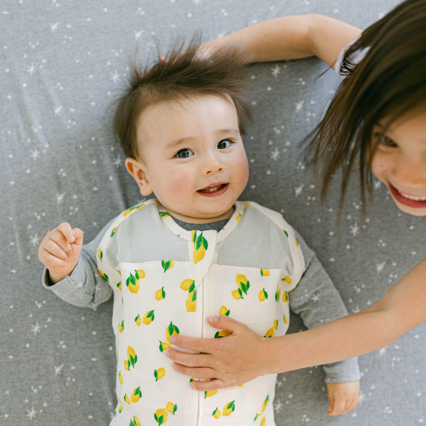 Happiest Baby Sleepea 5-Second Swaddle - Organic Cotton Baby Swaddle Blanket - Doctor Designed Promotes Healthy Hip Development (Ivory Lemons, Medium)