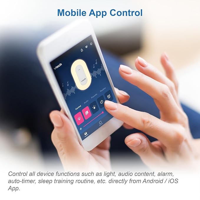 - [Sleep Training Scheduler & Sleep Tips Content from Experts] - VTech Soother app enables you to create sleep routine schedules which control the light, sound and projection features of soother to make your child understand and get habituated to sleeping routines. The app also provides tips from experts.