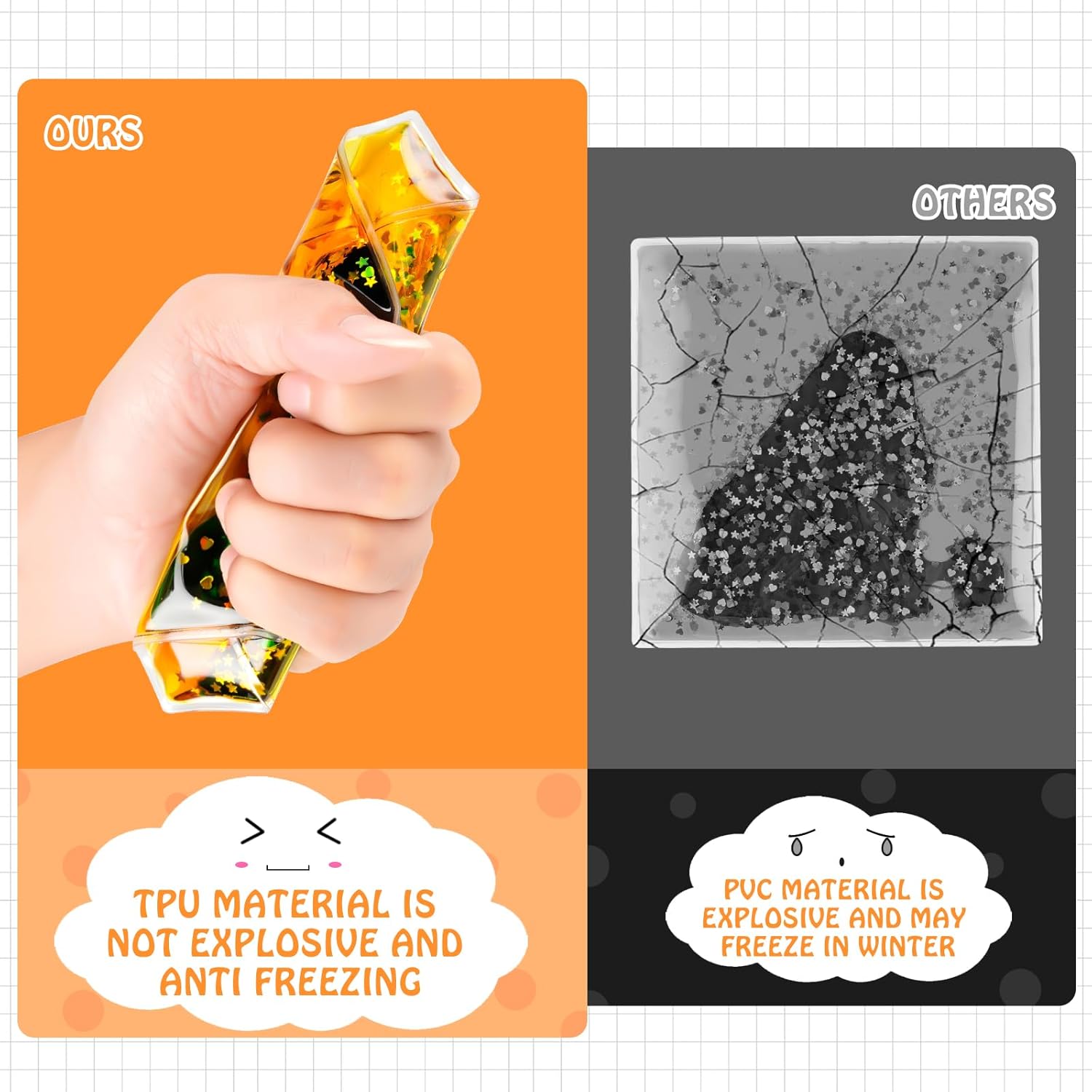 - Functional Design: Liquid sports gel toys not only relieve stress and anxiety, they also help improve focus and concentration and promote the development of sensory cognitive abilities. They are also a sensory tool that provides active play, learning and activities for young children.