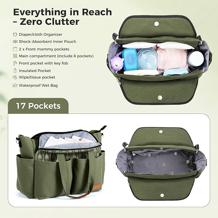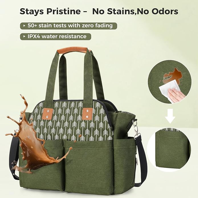 - Durable & Waterproof Diaper Bag: Crafted from high-quality polyester, this waterproof diaper bag tote is durable, lightweight, and easy to clean. Comes with a changing pad and stroller clips for on-the-go convenience. The detachable, adjustable shoulder strap allows crossbody use, while long tote handles make it a versatile mommy tote bag—perfect for everyday use, travel, or as a baby shower gift.