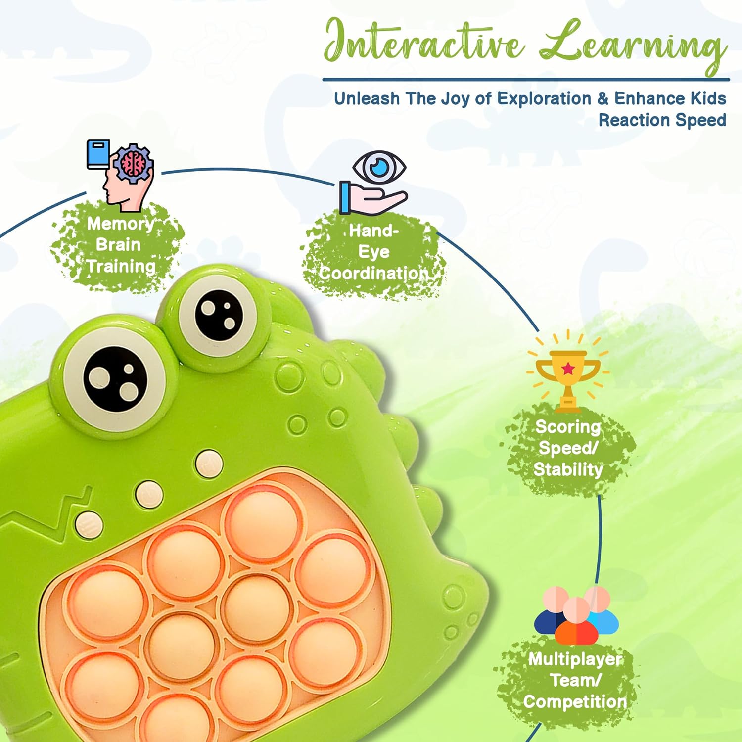 - UNLY U Speed Push Pop Dino Console: Immerse in multi-mode interactive fun with our Speed Push Pop Dino Console. Beyond the buttons and game modes, it's a journey of imagination and exploration. Crafted with premium materials, this console offers not just durability but an extended voyage into the world of play. Its minimalistic design complements the learning experience, making it a companion for creativity.