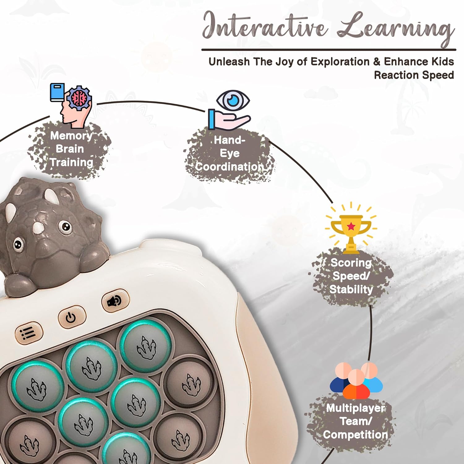 - UNLY U Speed Push Pop Dino Console: Immerse in multi-mode interactive fun with our Speed Push Pop Dino Console. Beyond the buttons and game modes, it's a journey of imagination and exploration. Crafted with premium materials, this console offers not just durability but an extended voyage into the world of play. Its minimalistic design complements the learning experience, making it a companion for creativity.