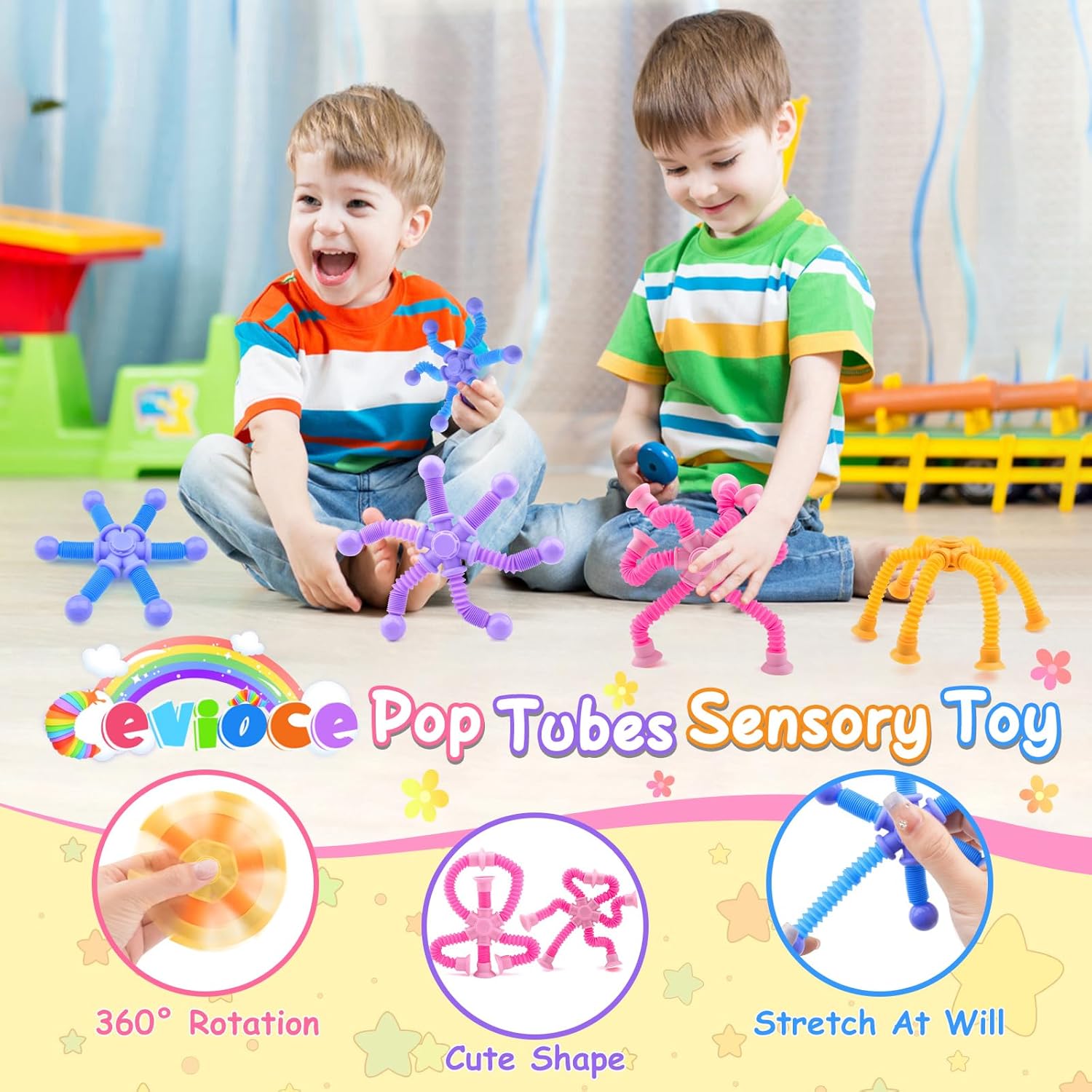 - Stress Relief Toy:Pop, Crinkle, Pull, Stretch! Stimulate your child's imagination and explore endless creative ways to play with our Pop Tubes! This fidget spinner is tear-resistant, can be folded into your many different favorite shape
