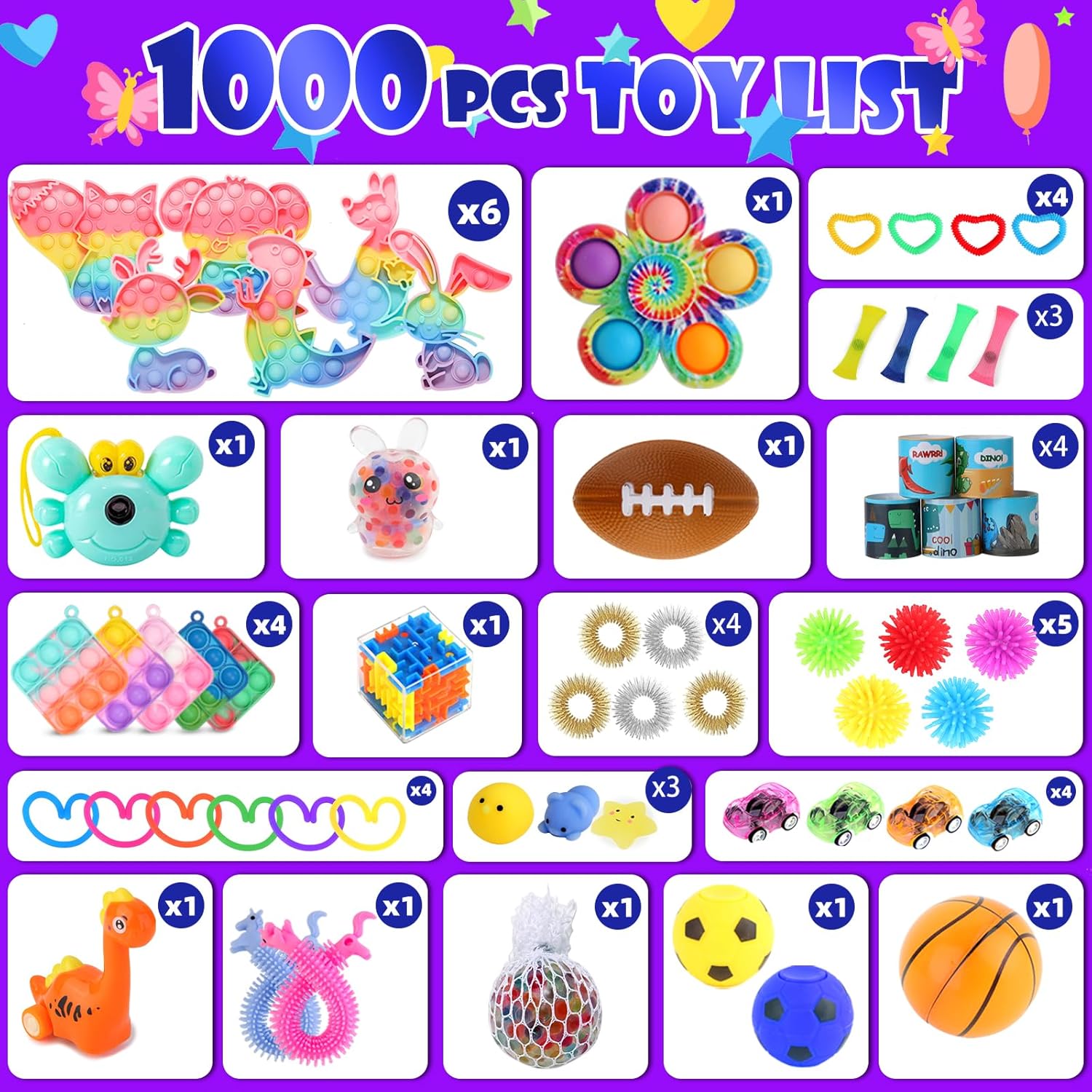 1000Pcs Fidget Toys Pack, Bulk Party Favors for Kids, Stocking Stuffers, Treasure Box Chest, Birthday Party, Classroom Carnival Prizes, Pinata Stuffers, Goodie Bag Stuffers, Stress Relief, Sensory Toy