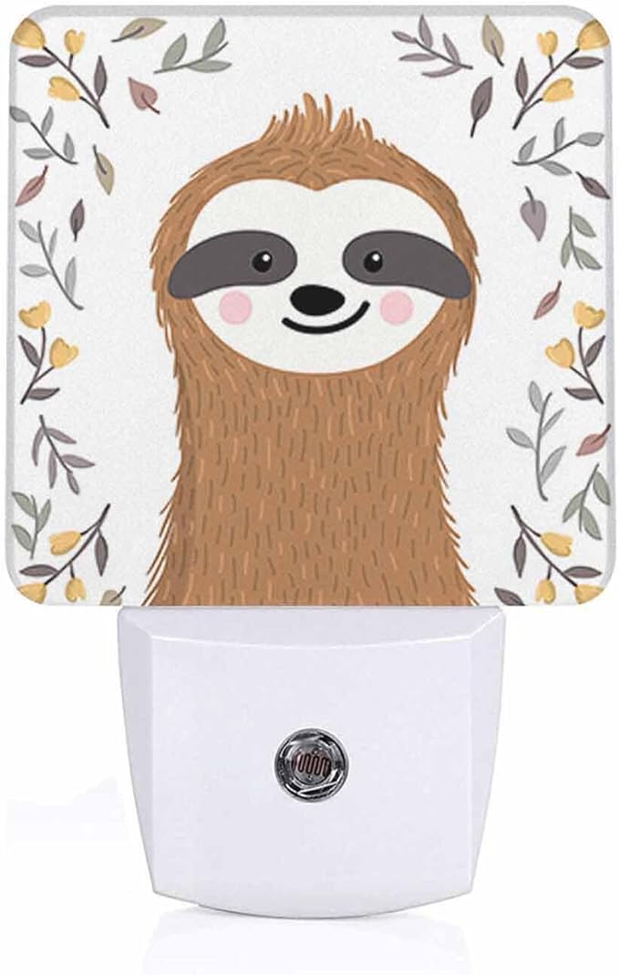 LED Night Light,Cute Baby Sloth Flower Leaf LED Night Light Plug into Wall with Dusk to Dawn Light Sensor White Energy Efficient Nightlight for Bedroom Bathroom Hallway Living Room Kitchen