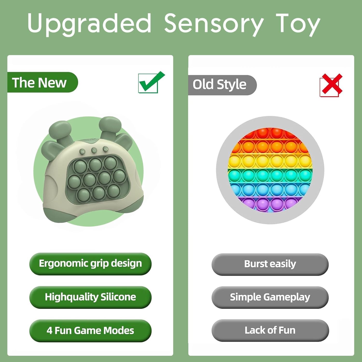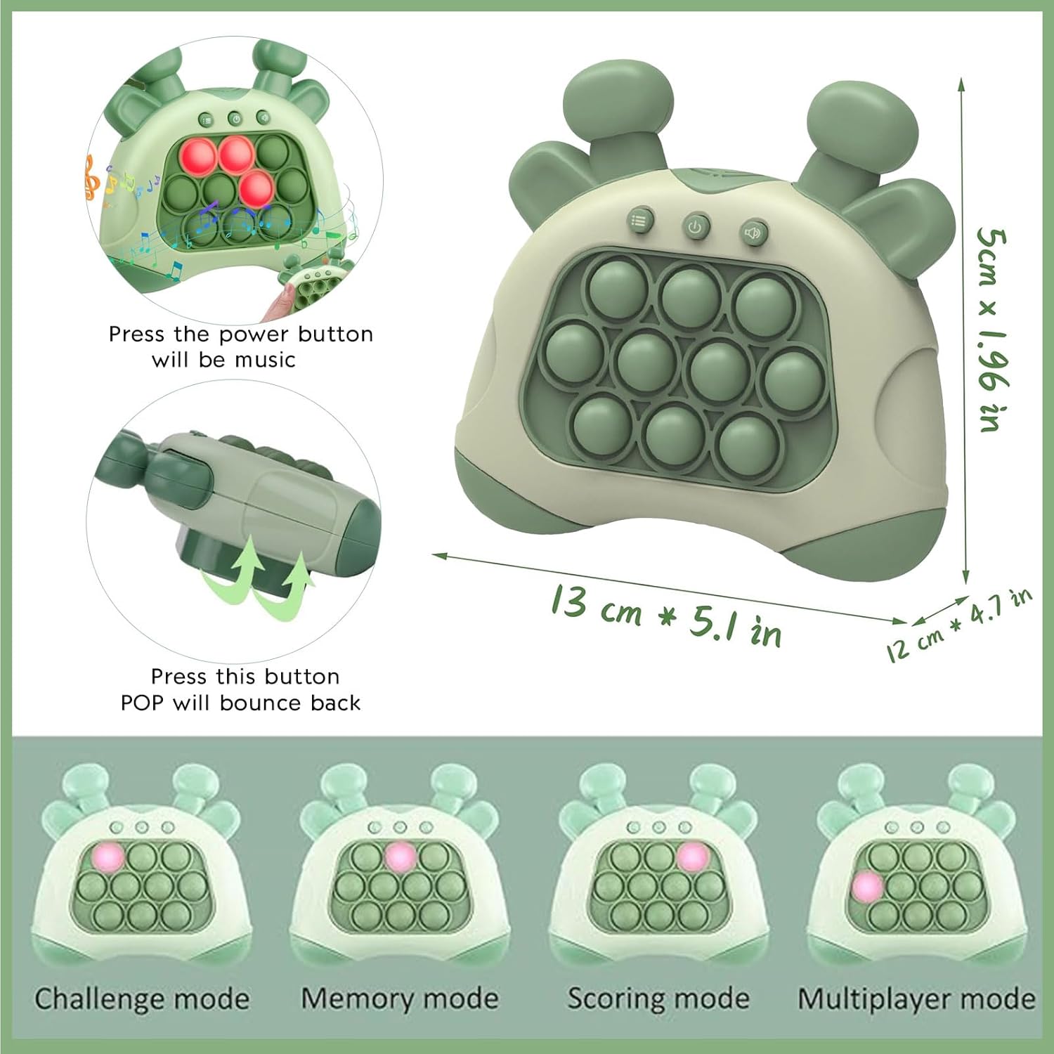 - 🎁【Easy To Play】Pop all the lit bubbles as soon as they appear, and then press the big button on the back to reset the bubbles before time runs out! Keep popping the bubbles fast to level up. It is a perfect gift for boys and girls to developing fine motor skills, cognitive abilities, and sensory processing skills, making it an ideal educational toy for kids.