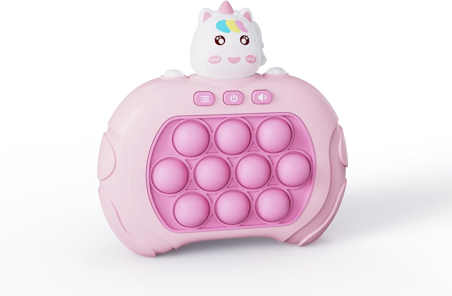 Unicorn Fast Speed Pushing Pop Game, Pink Pop Game Light Up Fidget Toys with Instant Sound Feedback | Animal Pop Target Push Bubble Game Toy for Kids Fast-paced Pop Game Console (No Battery)
