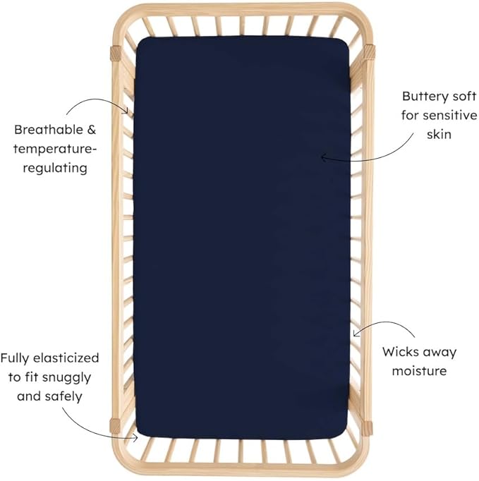 Kyte Baby Soft Crib Sheet - Standard Fitted Crib Sheet Made with Rayon from Bamboo, Ultra-Gentle and Breathable (Navy)