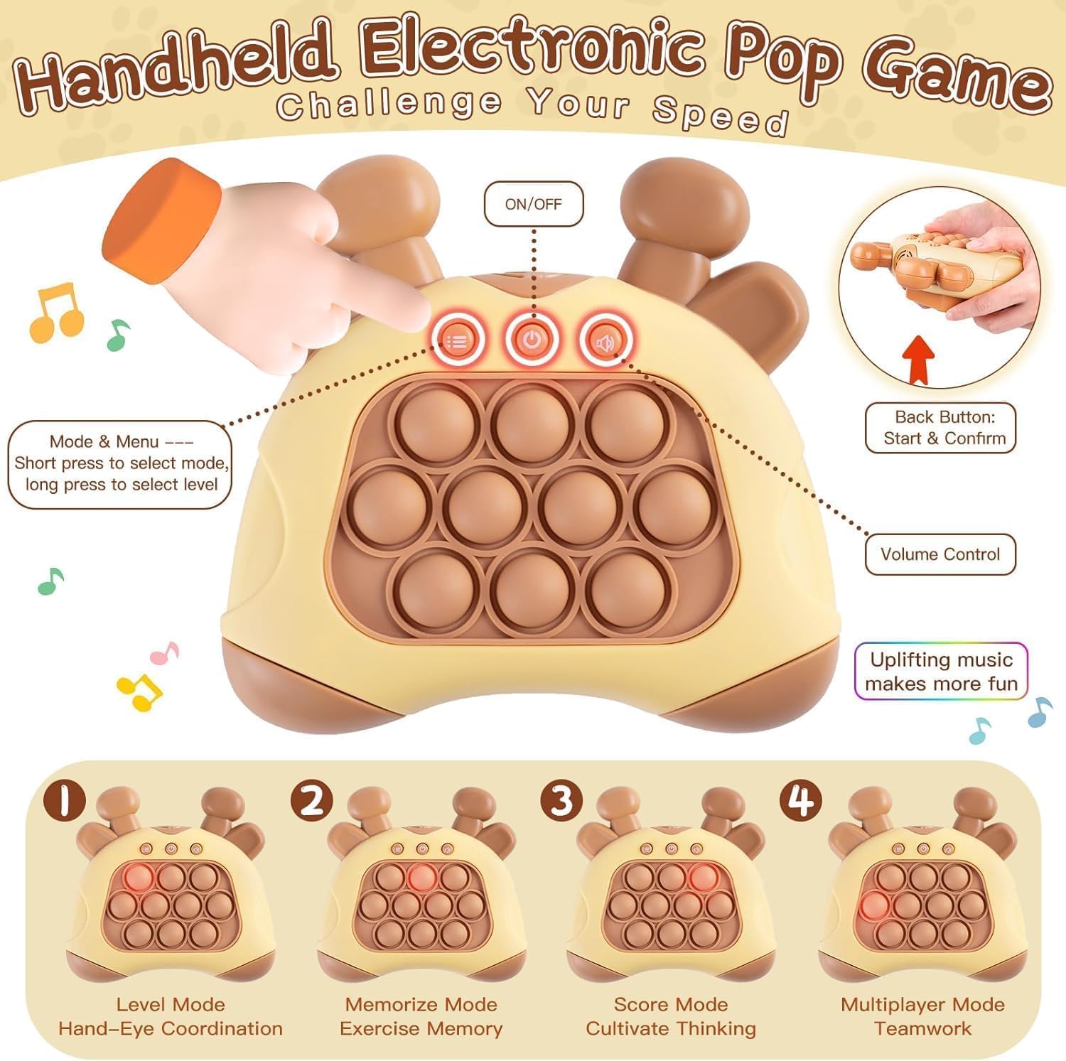 - Exercise reaction speed and memory---With multiple modes and difficulty levels, this fash push game offers various game modes to exercise reaction speed and memory. Its sleek design and high-quality materials make it a safe and comfortable toy for all ages.