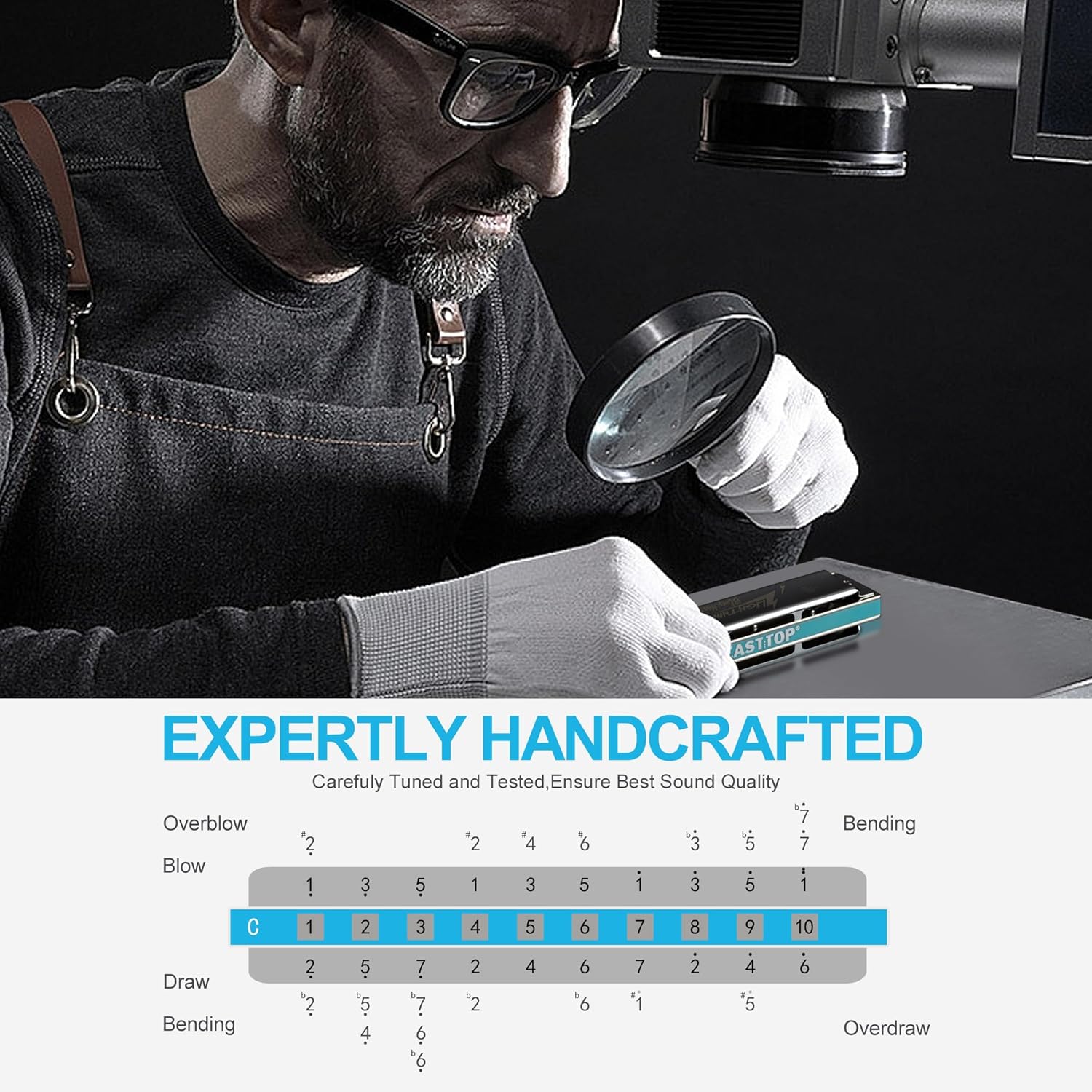 East top Harmonica, Advanced Blues Harmonica Key of C, 10 Holes Blues Harp Mouth Organ Harmonica with Silver Cover, Diatonic Harmonica For Adults, Professionals and Students, as a Gift