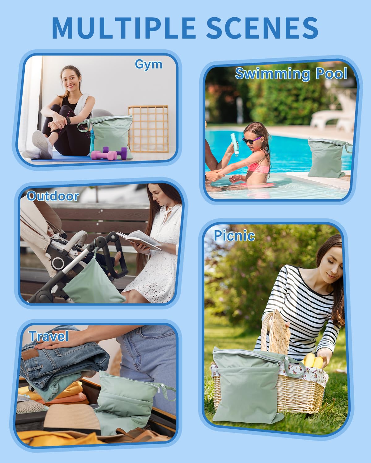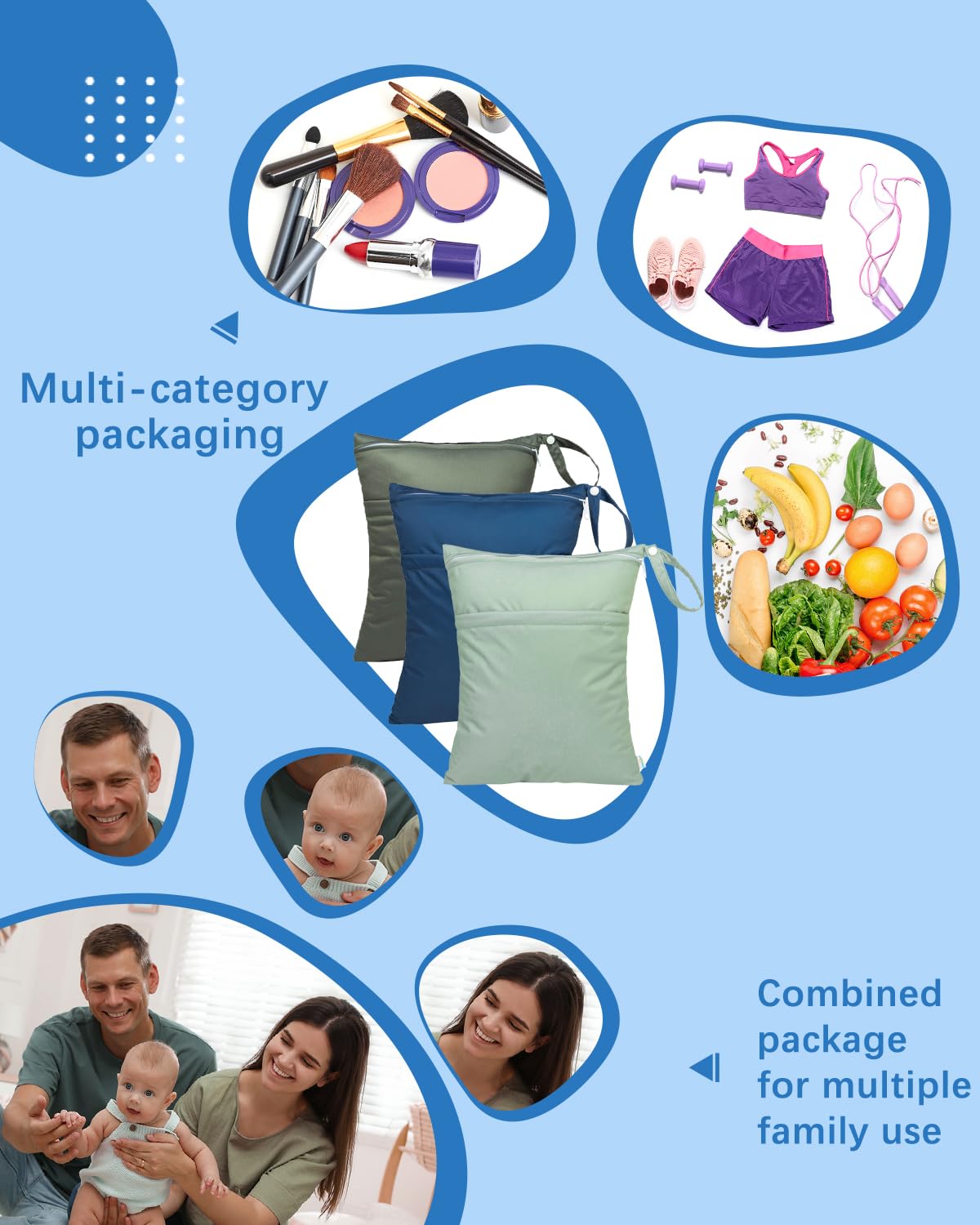 - Multi-Function: You will receive 3 pack wet bags, which size is They are perfect for preserving cloth diapers and other baby products, and they can also be used as swimsuit bags, bikini bags, bathing suit bags, travel bags, gym bags, storage bags, cosmetic bags, handbags, wash bags, organizer bags, breast pump parts bags, even as picnic bags. They are ideal for baby shower gift, get yours today!
