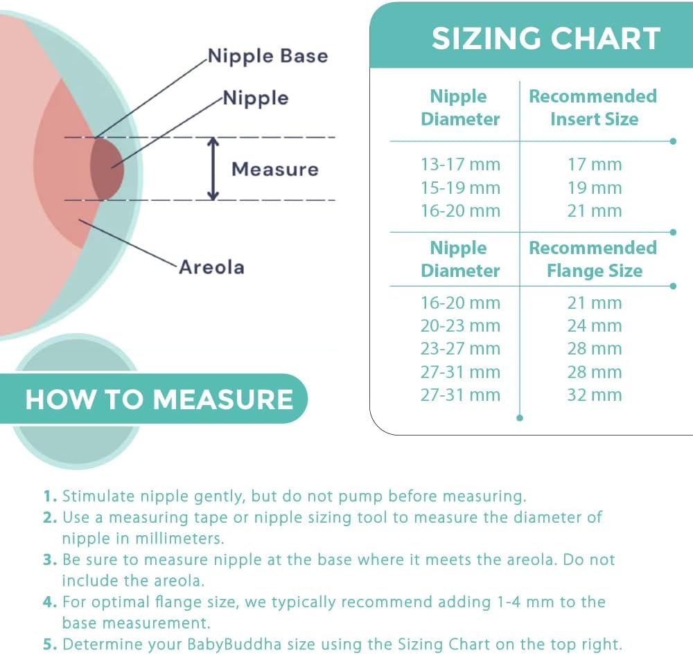 - FLANGE FIT MATTERS FOR COMFORT AND RESULTS: A properly sized flange is essential to ensure effective suction and prevent nipple pain or milk flow issues. Our 22–24mm flange range is designed for a close, secure fit to support consistent output and maximize comfort. Always measure your nipple before use—correct flange sizing improves pumping efficiency and protects sensitive tissue, making each session more productive and less stressful for new moms.