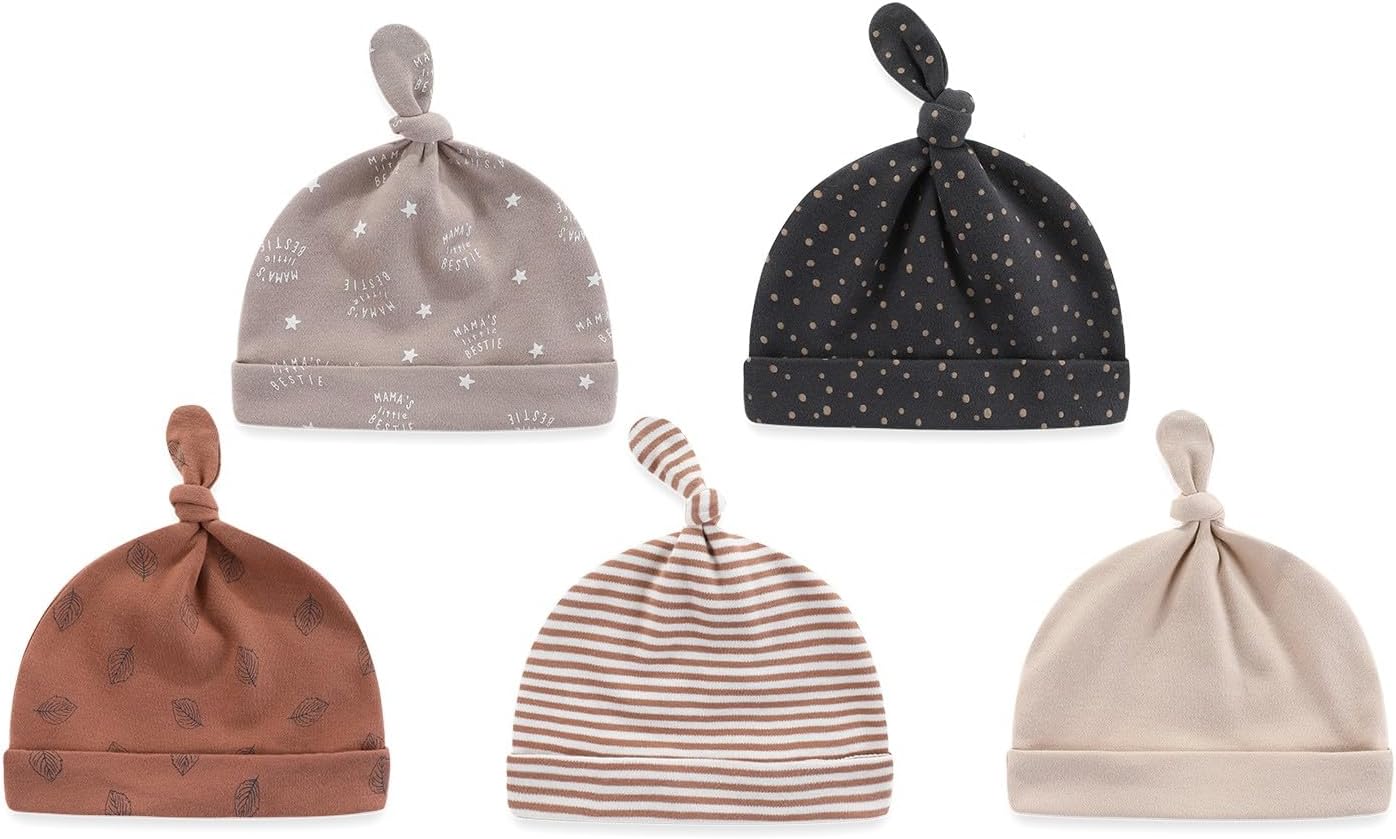 - Package:This unisex sets all the clothes and accessories you need for a new born baby boy girl.It includes 5 short sleeve bodysuits,5 pack of pants,5 hats,5 pairs of mitten