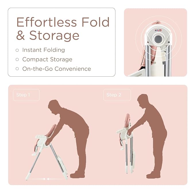KÜB 3-in-1 Foldable Baby High Chair, 7 Height & 4 Recline Adjustable Seat & Tray for Easy Clean, 2 Locking Wheels, Multifunctional Infant High Chairs for Babies and Toddlers (Pink, with Toys)
